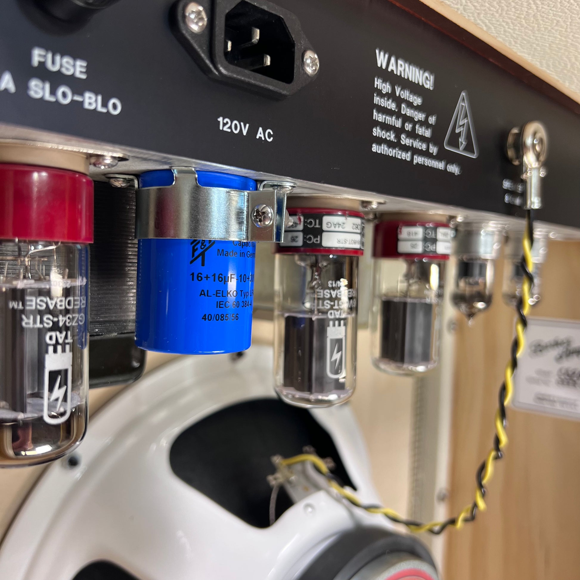 The Barker Amps CS20W Guitar Combo Amplifier is from a new line of "Custom Series" models. The CS20W is an all tube, hand-built and hand-wired guitar combo amplifier designed for pedalboard players. Similar to the Barker Amps "AD20W" and "PR-15W" it delivers vintage tone/feel with modern dimension and efficiency into a single channel design with simple controls. With a range from clean to overdriven breakup the Mk1 version produces 20 watts of power from two TAD 6V6 output tubes supplied by a GZ34 Rectifier. The cabinet is hand-built from select grade solid pine along with a high grade Baltic Birch Ply speaker baffle, Built standard with a 1x12" WGS speaker ET65 Standard (*Full & Balanced Tone*), or optional WGS Veteran 30 (*Modern Edge*). All tubes are premium grade TAD. Contact for more information and availability.